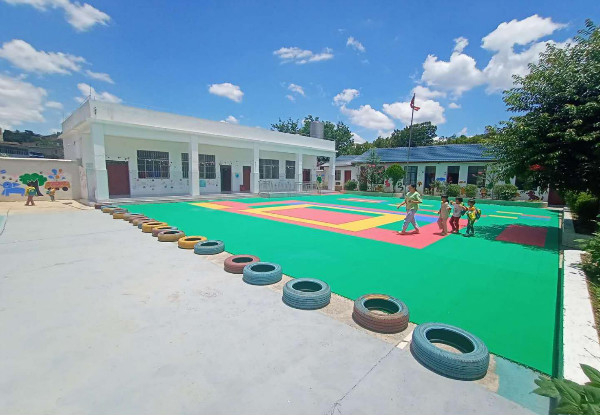 时值暑假,幼儿园里一片宁静。明亮干净的教室里,桌椅焕然一新,板报上还贴着“期末家长会”的字样与五颜六色的卡通贴纸。可以想象当它开学时,崭新的幼儿园里有和蔼可亲的老师,大山里的娃娃们也能在家门口享受到与城里几乎没什么区别的教学和设备,孩子们窗明几净的环境中认真学习,在宽敞平坦的操场上玩耍游戏,在可爱温馨的休息室舒服地午睡……