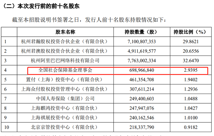 不难发现,在外部股东中占股最大的是全国社保基金,发行前股份占比2.9%。