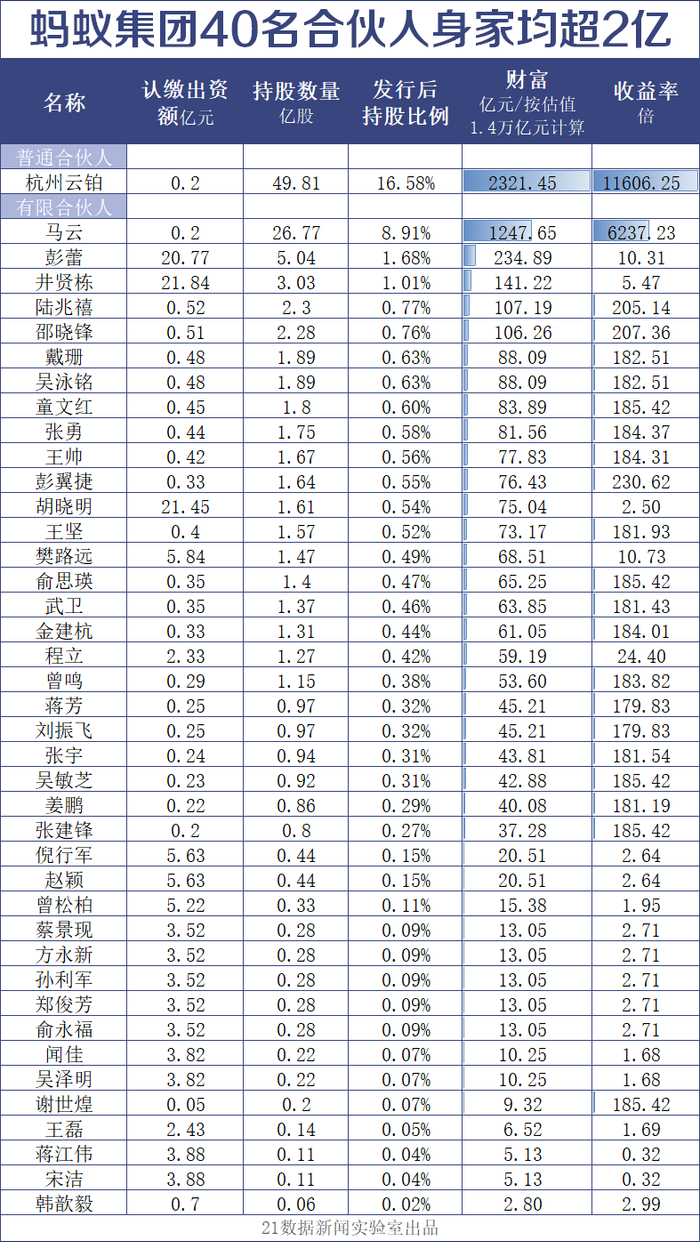 看点四:员工持股平台占股4成,40名合伙人身家均超2亿元