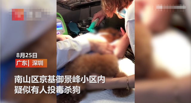 前几天,家住深圳京基御景峰小区业主肖女士晚上在小区内外遛泰迪犬,谁知道,回家后泰迪犬突然出现呕吐、抽搐的症状,后经宠物医院抢救无效死亡。
