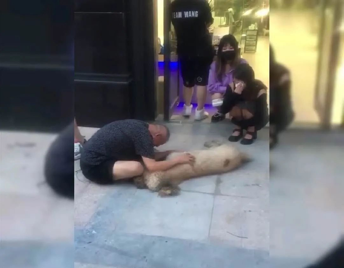 △网传一狗主人抱着死去的狗狗大哭