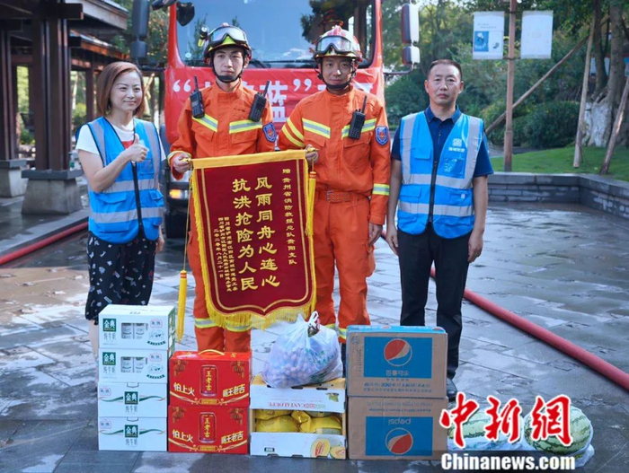 图为四川泸州当地民众为贵州省消防救援总队贵阳支队送来锦旗。谢金彬 摄