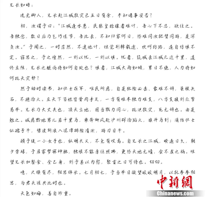 羡慕!女友向抗洪前线的消防男友写文言文家书,刚好520个字