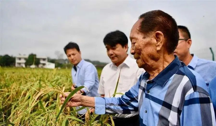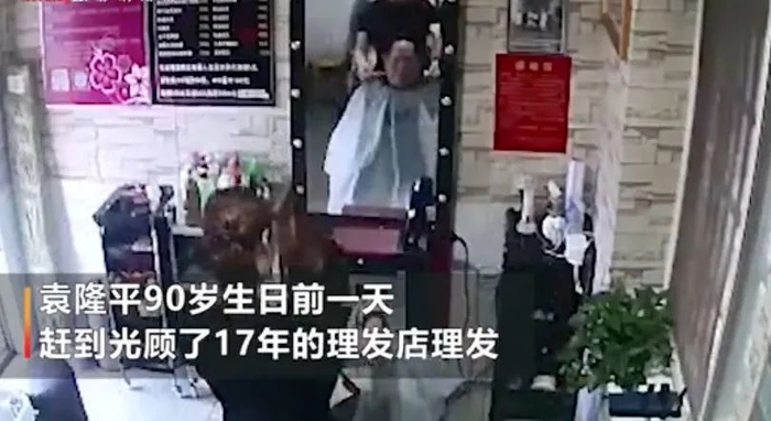 理发后,曹小平向袁隆平提出合影的请求,袁老立马答应