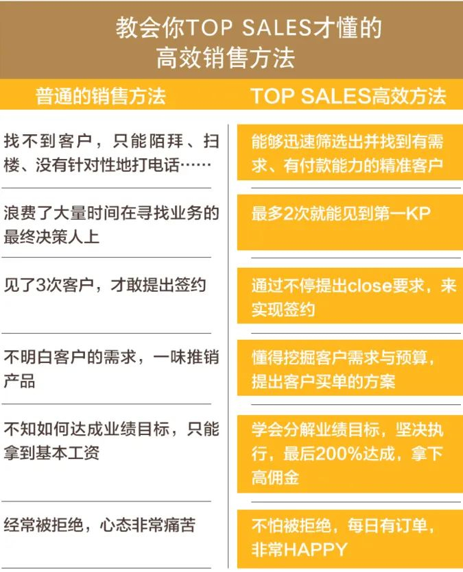 打破众多销售人“投入产出”严重不匹配,因为不得要领,业绩不能有效增长的困境。