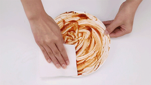 恰恰相反,这条魔术抹布的强大之处就是,冲水变新,油污只能停留在抹布纤维表面,遇水自然分离,不用来回搓洗,清水一冲,油污跟着水流走!