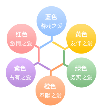 加拿大心理学家John Lee,以颜色为基础,将爱情分成六大类型: