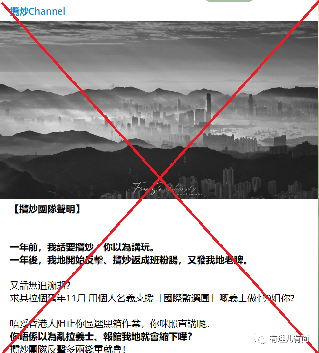 拿到钱,“我要揽炒”当真做了许多揽炒香港的事情,如在2019年区议会选举期间,其团队组织海外“专家”组成“国际独立选举监察小组”观察“选举情况”,以此干预香港事务,李宇轩当时以“香港故事”成员身份在记者会上发言。