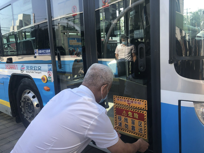 消除因公交车盲区造成的安全隐患,是此次整治行动另一大主题。记者在北京公交集团客三分公司场站看到,丰台交管部门新制作的盲区反光提示贴正在陆续张贴在公交车车身上,将对乘客、交通参与者进行安全提示。整治行动中,公交集团将开展车辆视线盲区及防范措施专项教育,通过路口实操练兵和现场体验,掌握车辆性能和盲区所在,并进行专项检查。