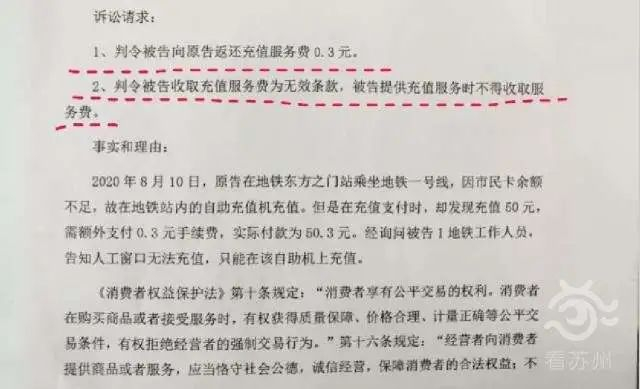 原标题:苏州地铁因3毛钱充值手续费被起诉,法院已受理