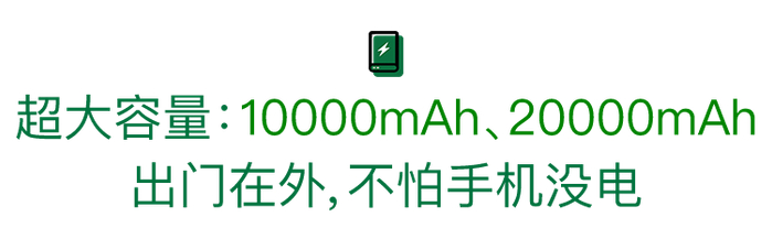 20000mAh就更厉害了,任你出门玩、出差办公,好几天都不怕没电!