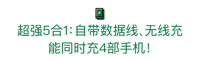 原标题:真·超级5合1充电宝!自带数据线,同时充4台手机