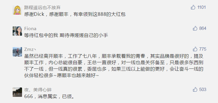 这不是王卫第一次自掏腰包奖励员工,顺丰上市时王卫也曾给全体员工发红包,有员工收到的金额高达6776元。