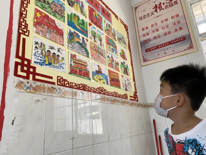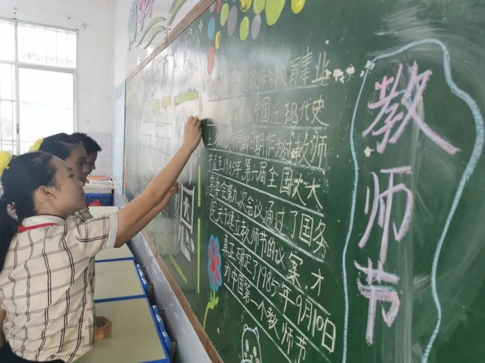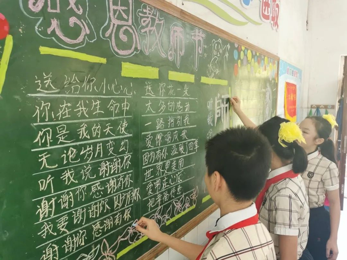 南宁市上尧小学六年级学生为即将到来的教师节精心制作板报