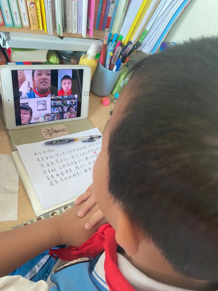 小记者认真投入线上采访活动,不但积极提问,还提笔记录,一个比一个用心!小记者柏君说:“这个假期我做了关于碉楼和灰塑的研学,听了老师的讲解,我的知识点掌握得更牢固了!”小记者梓辉总结道:“通过这次采访,我们解到保护岭南特色建筑的重要性和艰巨性,作为小记者我想号召大家一起努力保护好岭南特色的建筑,守护好我们共同的城市家园,守护好这份美好。”