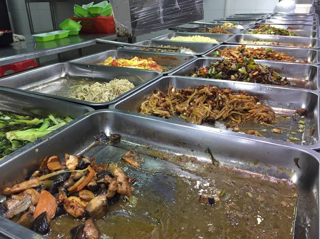根据统计,正常学期的周末学生就餐人数会因外出等原因大幅减少,于是食堂也相应地把周末的备餐减少约40%。