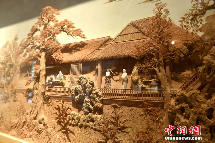 软木画中式建筑。中新社记者 吕明 摄