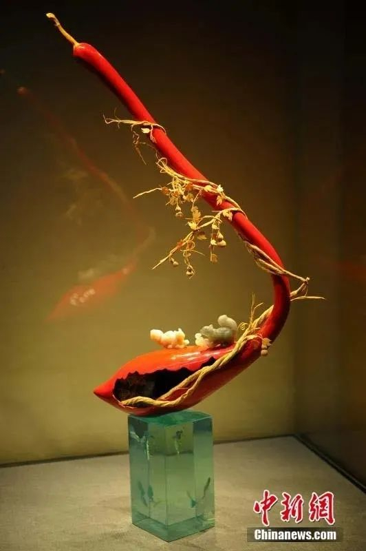 18道工序打磨出葫芦上的大漆祥云纹,荡舟的渔翁用的是寿山石雕,软木画擅长的题材松鹤仙人成为主角,这组壶中乾坤系列表示天上人间的意境。过去从未有过这样的造像和材质混搭,这组作品引发了业界的关注。,