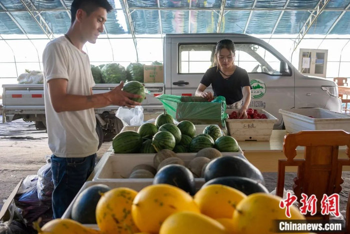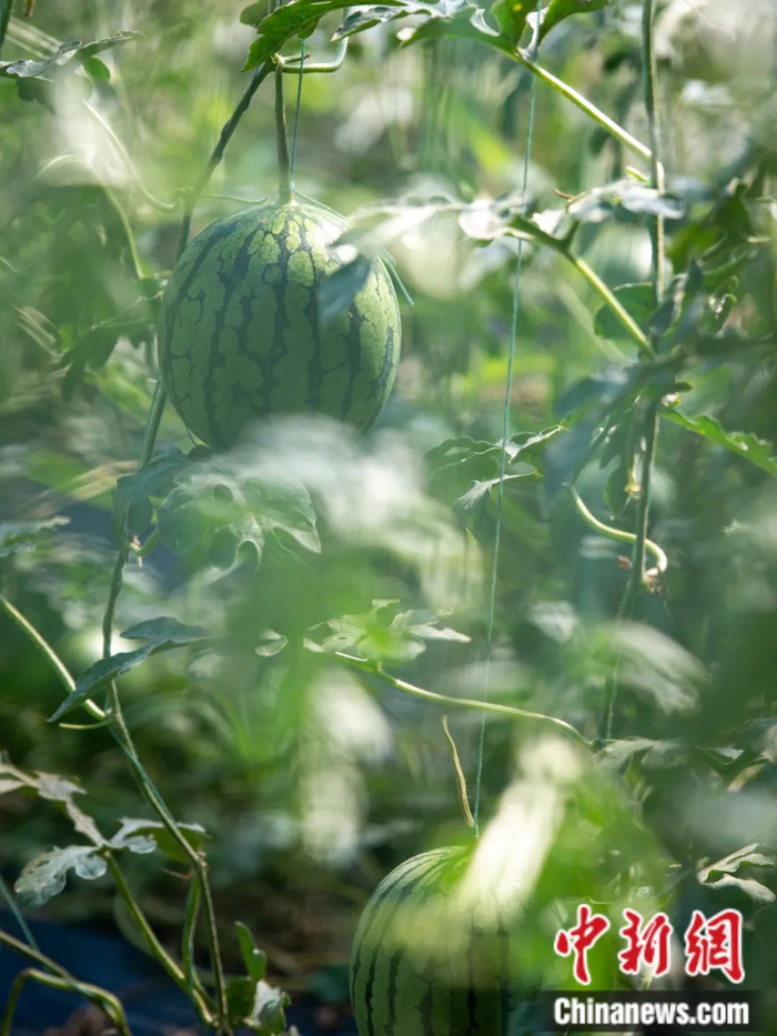 小新在各大棚看到,目前红瓤、黄瓤西瓜,人参果、巧克力番茄、香瓜、菜瓜等已进入采摘期,蓝宝石葡萄、美早车厘子等长势良好。