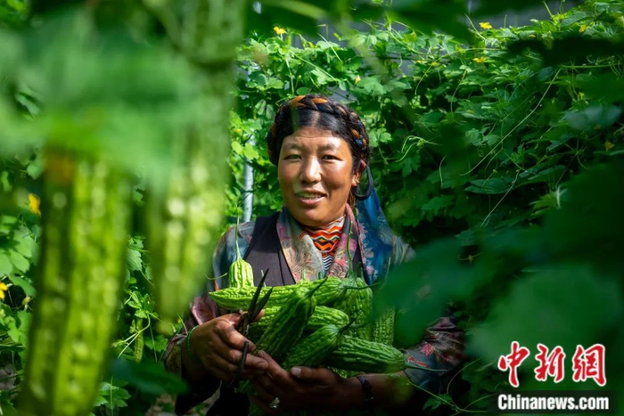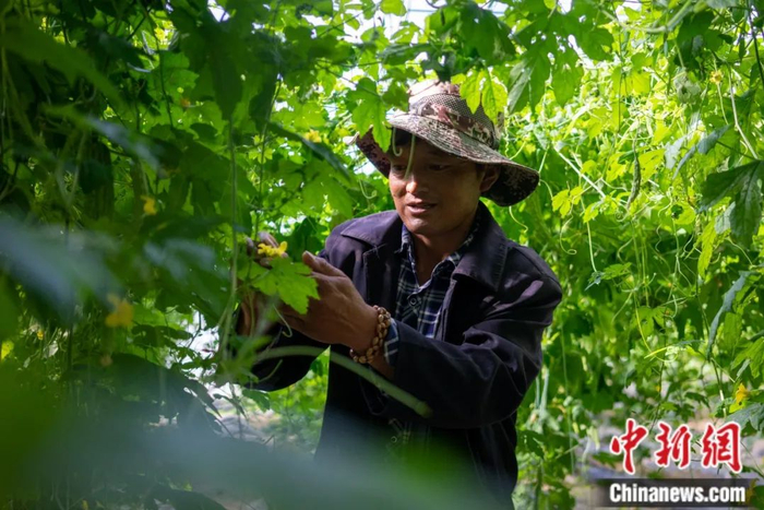 44岁的旺久目前在西藏珠峰农业科技发展有限责任公司的大棚内工作,月薪5000元。小新在现场看到,他负责管理的大棚内,苦瓜长势茂盛,工人们正在采摘、装箱。“之前我在那曲做零工,因为时断时续,一年收入只有1万多元。”旺久说,到大棚后,公司的技术人员手把手教育苗、授粉等技术。