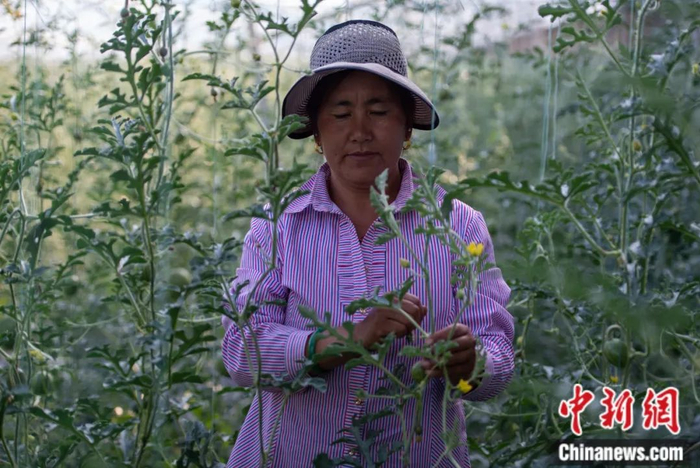 白朗县农牧民打理西瓜棚,他们实现了就地就业。