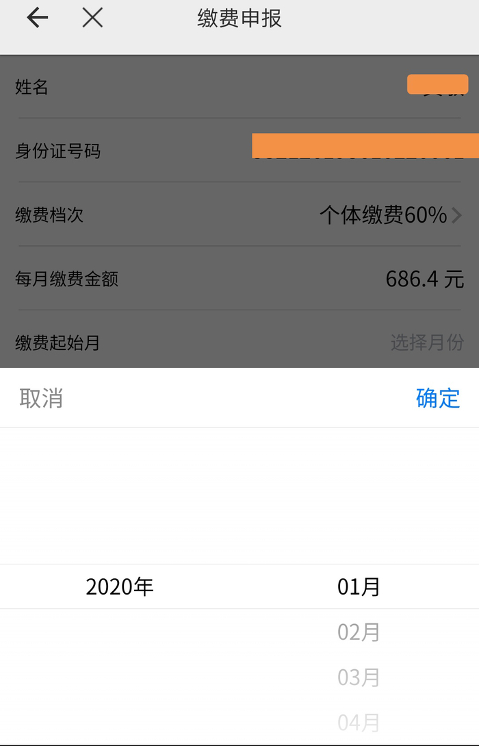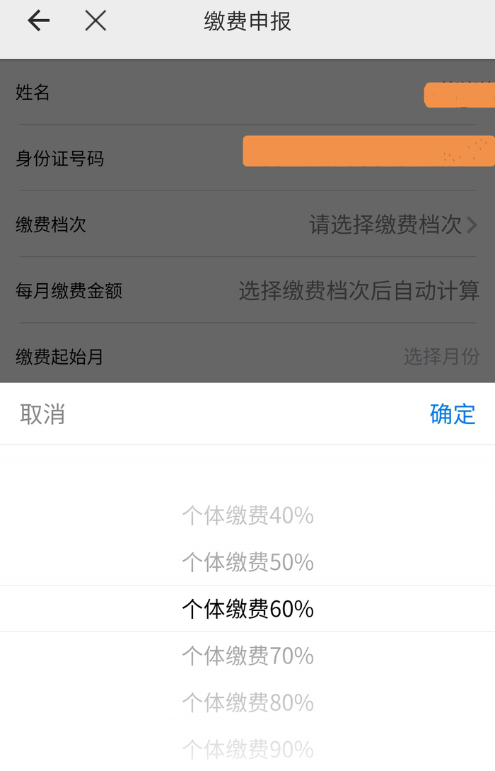 2、核对个人信息,选择缴费档次和缴费起止月份,一般是当前年度1月至12月。