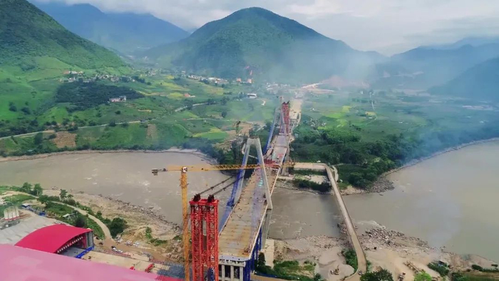 8月29日,保泸高速公路勐古怒江特大桥最后一节重达99.9吨的8米钢箱梁在起重机牵引下,从怒江的保山岸边缓缓牵引至距江面50多米高空,并平稳、精准地落在预定位置上。至此,勐古怒江特大桥按照先边跨后中跨的吊装顺序,57节段钢箱梁全部吊装完毕,云南省跨径最大的钢箱梁斜拉桥成功合龙,保山和泸水又多了一条联系的纽带。☛详情