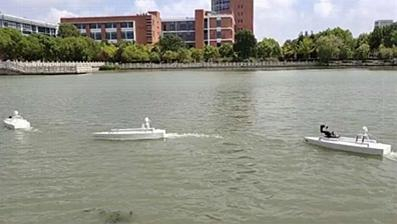 王鸿东副研究员指导,船舶海洋与建筑工程学院18级本科生李可路、杨鑫德、李选鹏、张东超,机械与动力工程学院18级本科生魏圣哲完成的作品《“啸海苍狼”智能围捕无人艇集群系统》获得设计与制作类竞赛(水面组)特等奖。该项目团队提出一种远程遥控无人母船领航与多艘自主无人子船伴随的巡逻、探测、围捕海上集群模式,设计无人艇集群通信与控制架构,开发多元信息感知与目标识别、单艇循迹避障与集群围捕等算法,并成功在校内湖泊实现原理样艇演示验证。
