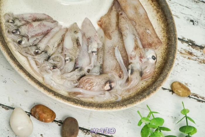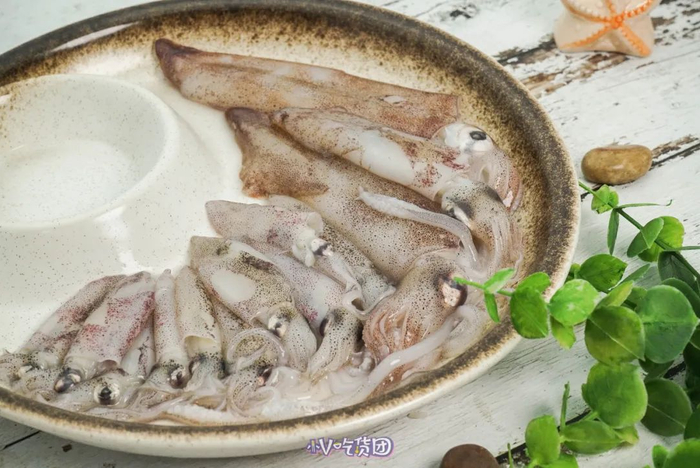 灯光鱿鱼比普通的鱿鱼小巧,但脂肪含量还不到2%。看似满满的胶原蛋白,其实对怕胖的V星人特别友好。