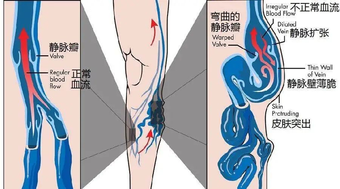 而帮助瓣膜闭合则是能够防止血液倒流。静脉瓣膜就好像一个单向阀门,让血液从下至上流向心脏,如果闭合不完全,血液回流导致静脉压过高,就会造成静脉曲张。