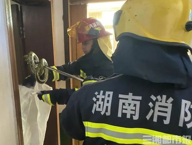 7月7日3时55分,天心区劳动路消防救援站接到长沙消防指挥中心调度,称位于天心区向东南路小区11栋一2楼住户家中有群众发现有蛇。
