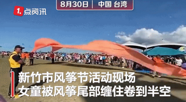 据@沸点视频,8月30日,中国台湾,新竹市举办的风筝节活动现场,风势突然增大,一名女童被风筝尾部缠住身体卷到半空,在风中上下乱飞,现场人员不断惊声尖叫。