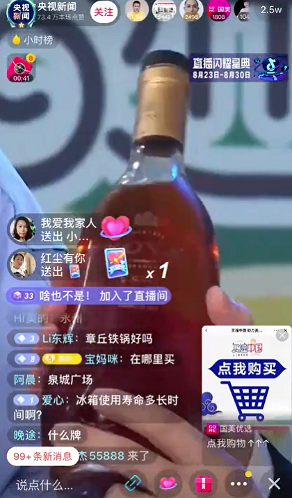 “买遍中国·助力美好生活“带货直播让大家了解了很多山东的名优特产品,康辉老师还为热情的观众们解锁了更多优惠与惊喜。其中,可雅白兰地不但比平时市场价更有优惠,还且还有好礼相送:可雅10年XO迷你版,可雅6年VSOP迷你版,以及网红款——不到四十喝不出味道的珍藏版五星金奖白兰地迷你版。三位主持人用山东人的豪爽热情,将生活里的风俗人情与可雅白兰地的烈感很好地融合在一起,将现场人气引向高潮。