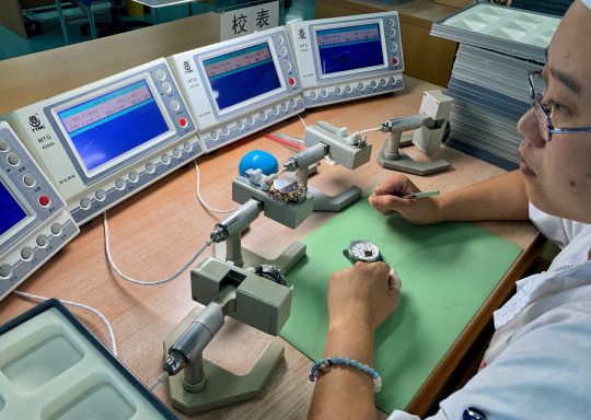 海鸥是少数从零件、机芯到组装全包的手表厂。一只手表诞生的工序不少:上游工厂凑齐100多个零件,然后分到装配厂组成机芯,最后送到套件厂上表盘。2000年之前,手表厂只负责生产表头,顾客还要在百货站另行配表带。
