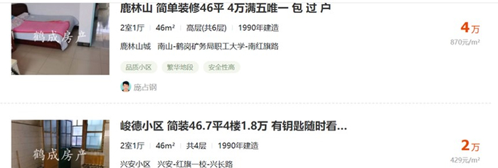 事实上,不仅是鹤岗和阜新,包括七台河、双鸭山等地也出现了“白菜价”房源。安居客网站的数据显示,七台河总价低于10万的房子位数不少,其中一套位于北岸新城的48平方米的小两房,总价仅为5万元。双鸭山的情况也较为相似,总价10万以内的二手房源不少。