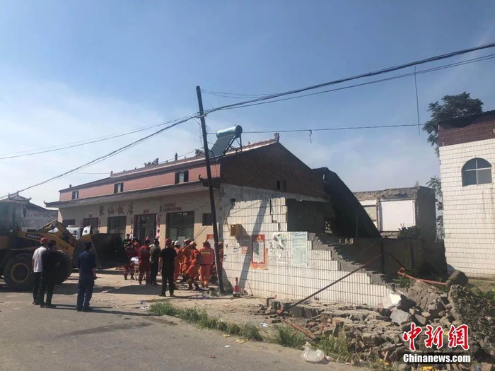 从事故现场照片看,饭店的正面墙体没有破坏,坍塌的主要是后院,知情村民表示,后院部分是以前修的,设计和建筑材料都比较过时,质量不佳。
