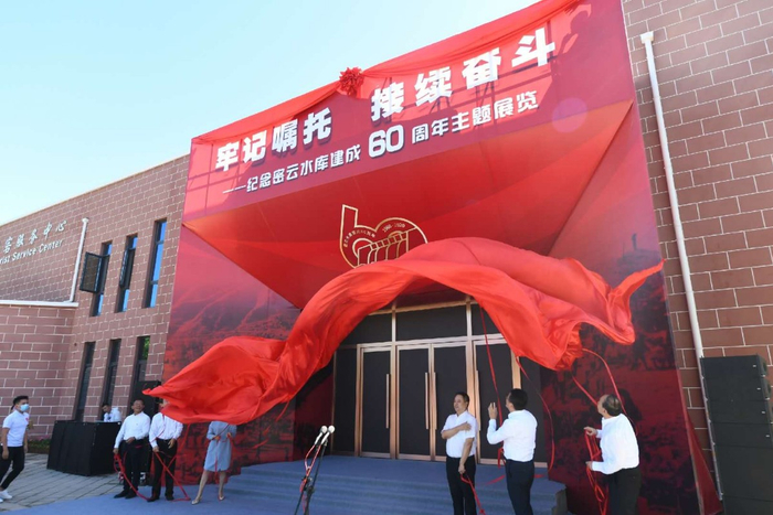9月1日上午,密云水库建成60周年主题展览开幕。展览以密云水库60年的光辉历程为主线,采用文字、图片、展品、模型和多媒体等形式,回顾60年来密云水库建设、守护的历程,五个篇章展示了密云水库的建设史、移民史和奉献史,以及探索保水和富民的光辉历程。