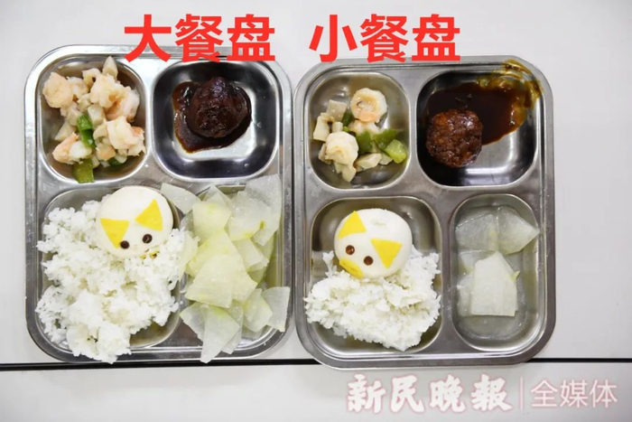 钱静举例,以往,有的孩子一块大排吃不完就扔了,现在,食堂师傅们就将大排分成半块半块,或者切成肉块,供学生选择。其次,学校也将推出“大餐盘”和“小餐盘”,由家长预先为孩子选择。大餐盘米饭为55克,小餐盘米饭为40克,菜量也略有区别。此外,各个学校将在餐具回收区域安排现场监督员,了解学生剩饭剩菜情况,记录剩饭、剩菜数量,汇总统计后,根据剩菜数量调整菜单,尽量在保证营养均衡的同时,满足孩子们的口味。