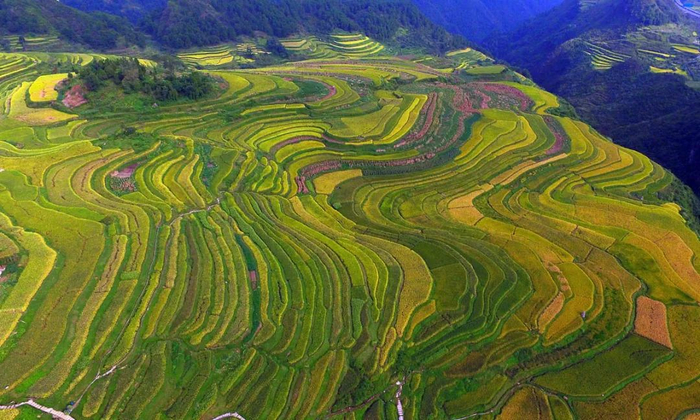在秋天最美的季节,必须要来高要村,闻千亩梯田的稻香,领略千亩稻谷的绝美风光。