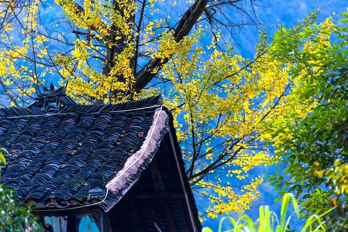 古道边、屋檐下或是石阶上、河流旁,银杏树都会以不同的姿态出现在你的视野。