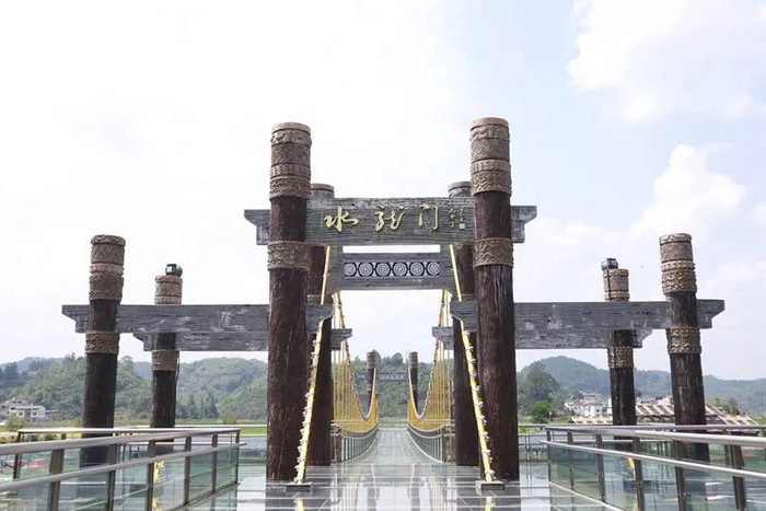 在音寨内,还有一座水龙门玻璃吊桥隐藏在连绵山脉中。这竟然是多多唯一一座敢通过的玻璃桥,不同于那些眼花缭乱的桥梁,它没有险峻的地势,颜值却很高,是一座建在河上的玻璃桥。