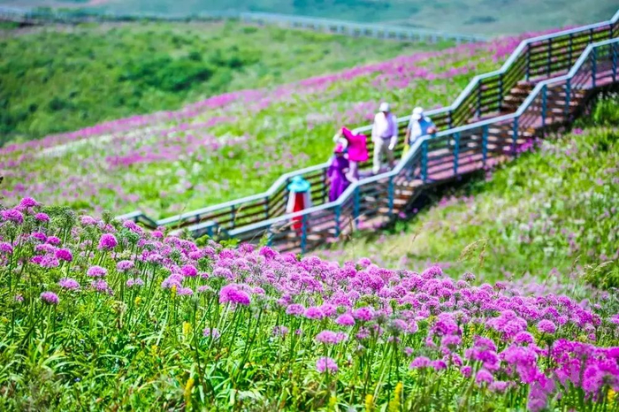 每年的盛花期,大批游客从全国各地前来,只为一赏花海真容。除了看花,韭菜坪还是登山、观云海、日出,赏漫天星空的好去处。