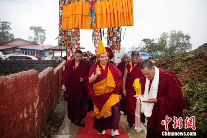 8月30日,十一世班禅来到墨脱县仁青崩寺礼佛,仁青崩寺以最高礼仪迎请班禅。中新社记者 何蓬磊 摄