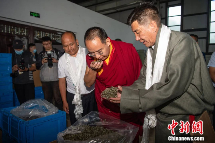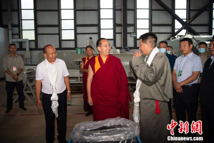 8月31日,十一世班禅在墨脱县墨脱村茶叶加工车间视察。中新社记者 何蓬磊 摄