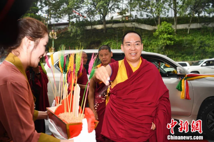 8月29日,十一世班禅抵达墨脱县,接受民众敬献的吉祥切玛。中新社记者 何蓬磊 摄