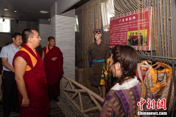 8月31日,十一世班禅在墨脱县门珞历史文化遗产博物馆参观。中新社记者 何蓬磊 摄