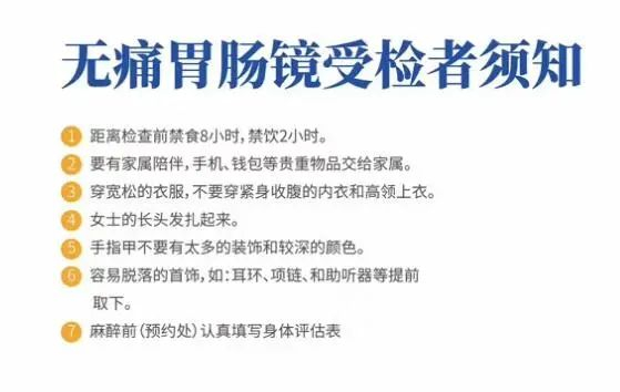*无痛胃镜麻醉前禁食8-12小时,禁水4小时,夜间12点以后禁食、水。高血压病人晨起一口水,一粒降压药。
