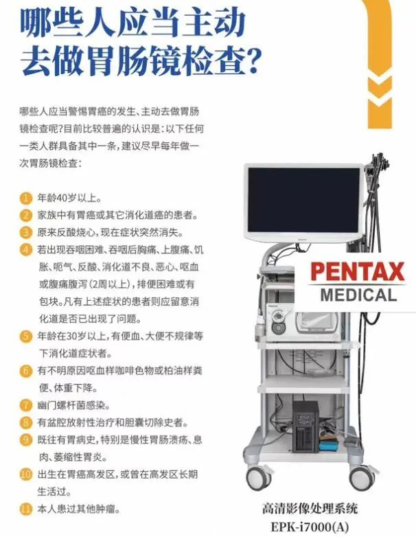 据了解,胃肠镜检查是医生公认的诊断消化道疾病的最直接方法,部分国家已经把胃肠镜列入40岁以上人群的体检必检项目。这样可做到早期发现,早期治疗,把问题消灭在萌芽状态,避免后患。(比如从大肠息肉发展成为大肠癌大约需要10余年,人们完全有较为充裕的时间去阻断息肉的癌变。)