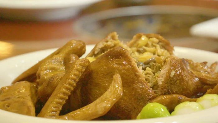 但这24个字包含全鸭拆骨、填料、上色、油炸、蒸煮等13道工序,耗时4小时。