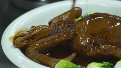 “泡发材料,生鸭去骨,全鸭走油,爆香食材,充填饱满,高火炖制。”老师傅将霸王鸭的烹饪过程总结成24个字。